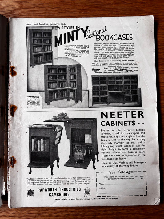 1930’s HOMES AND GARDENS Magazine January 1934 Illustrated ADVERTS