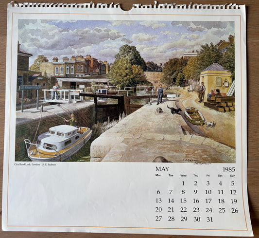 S R Badmin Signed MAY 1985 Calendar City Road Lock ILLUSTRATION PRINT 1980’s