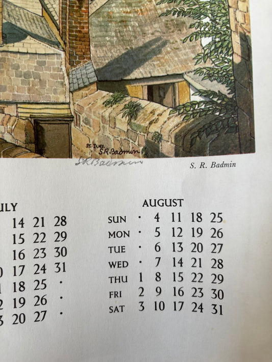 S R Badmin Signed ST IVES CORNWALL 1963 Calendar ILLUSTRATION PRINT 1960’s