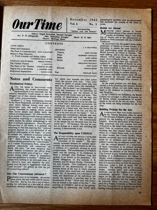 Seton McConnell OUR TIME Magazine December 1946 James Boswell Cledwyn Hughes