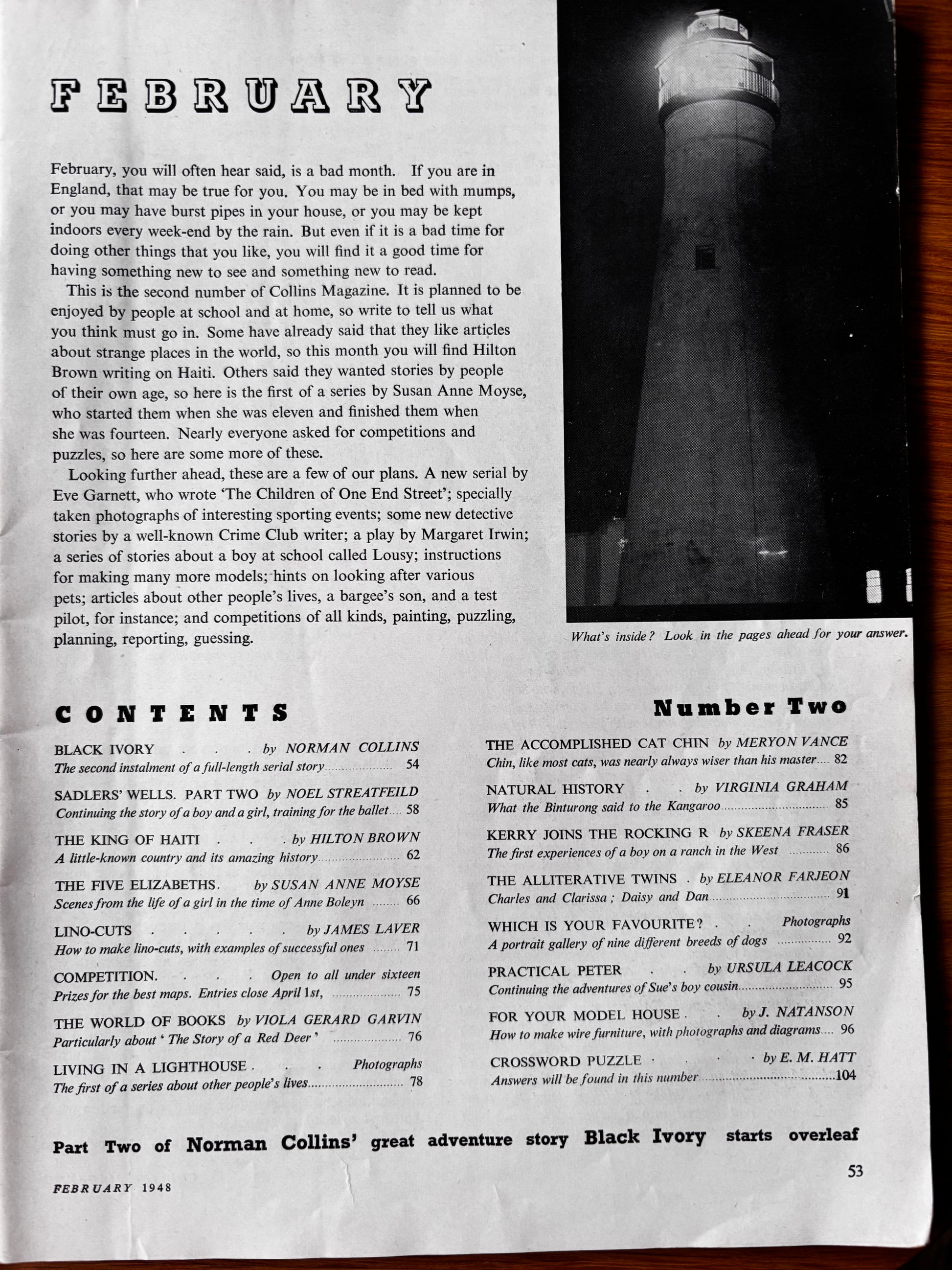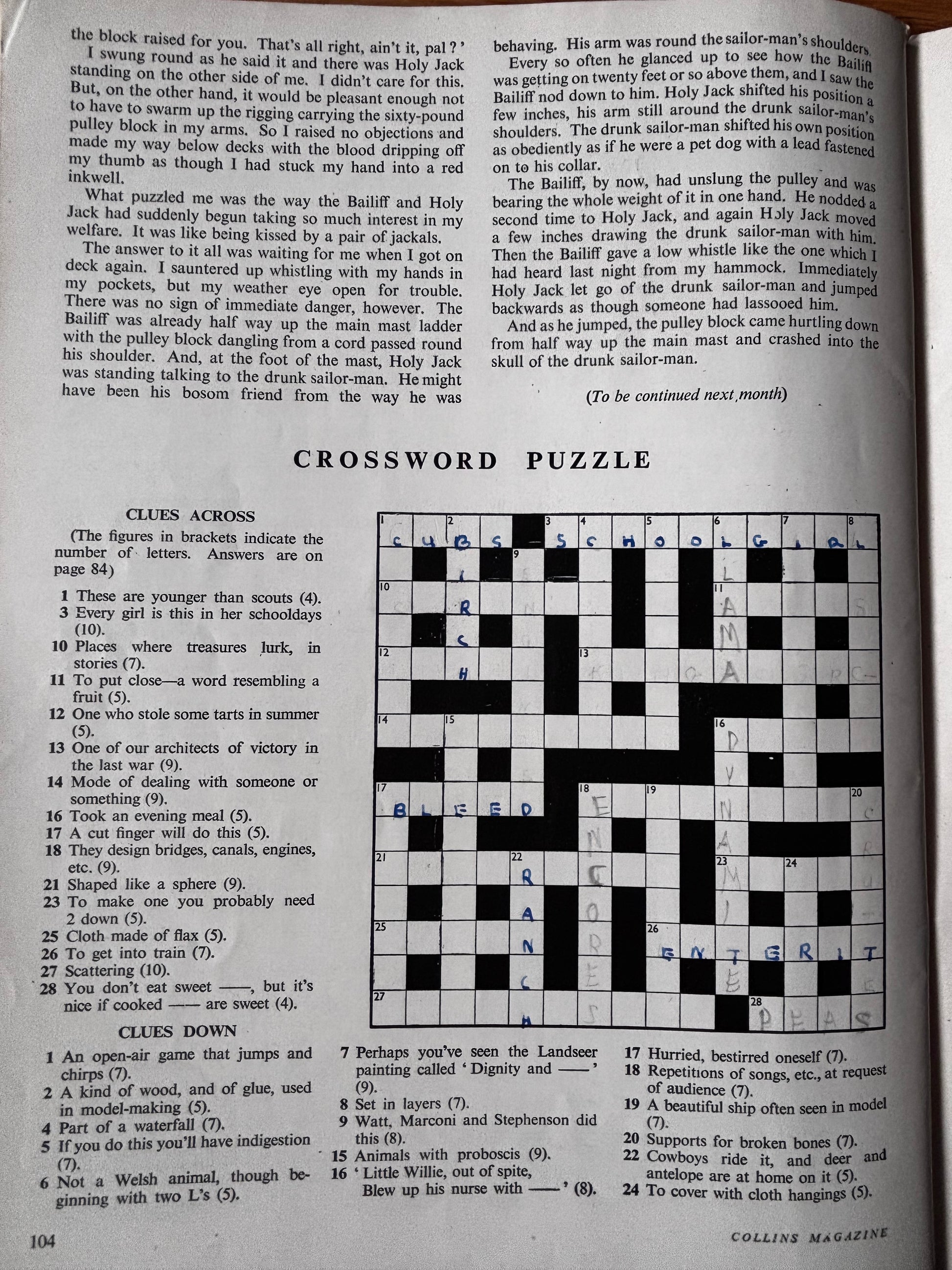 Contains articles, cartoons, black and white illustrations by Susan Einzig and Peggy Beetles. Includes a small advert by Rowland Emett. The issue is in good condition, however noted that a crossword has been completed. Pages are otherwise clean and secure.