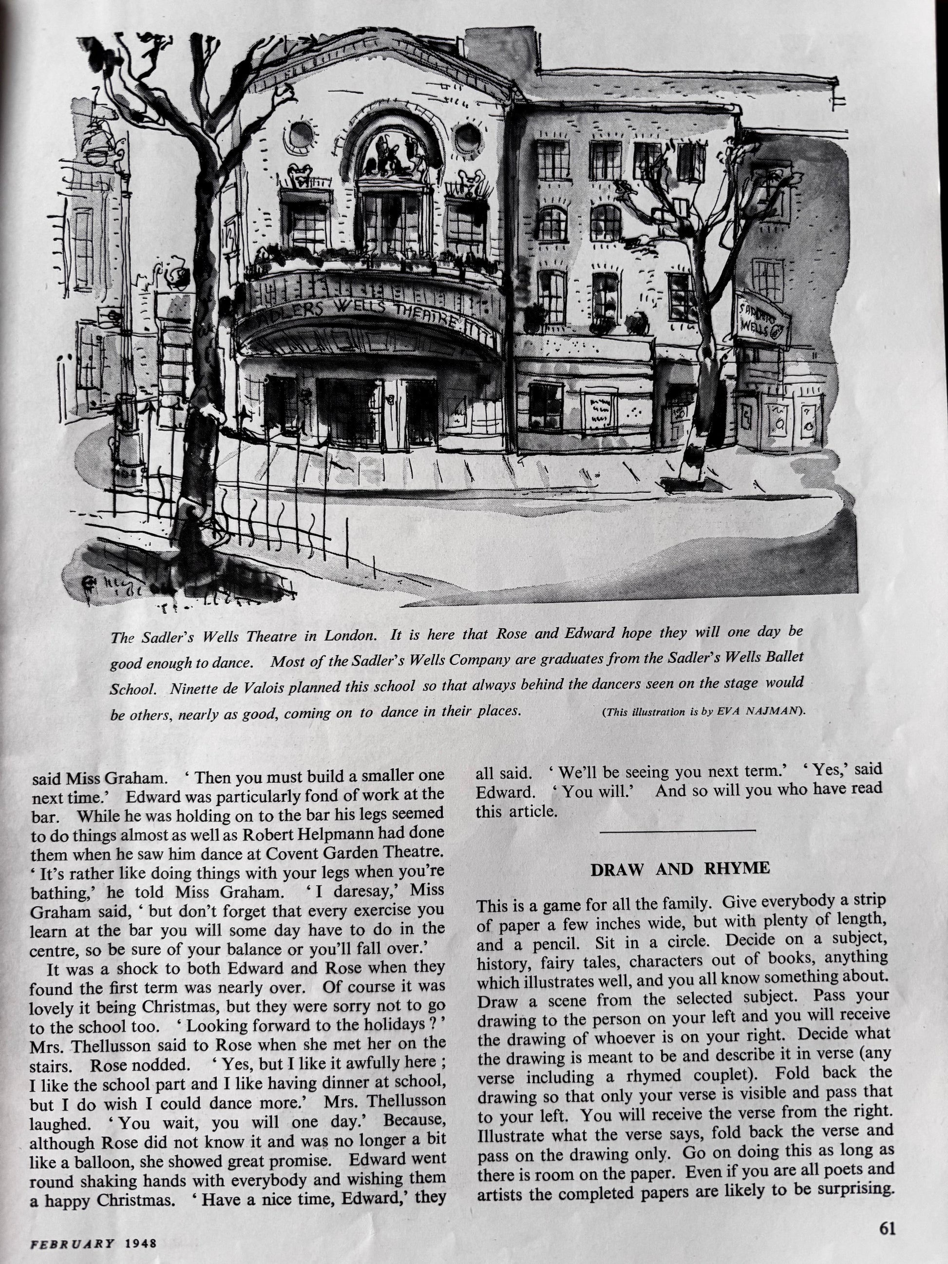 Susan Einzig COLLINS MAGAZINE February 1948 LINO CUTS Emmet Advert Ballet