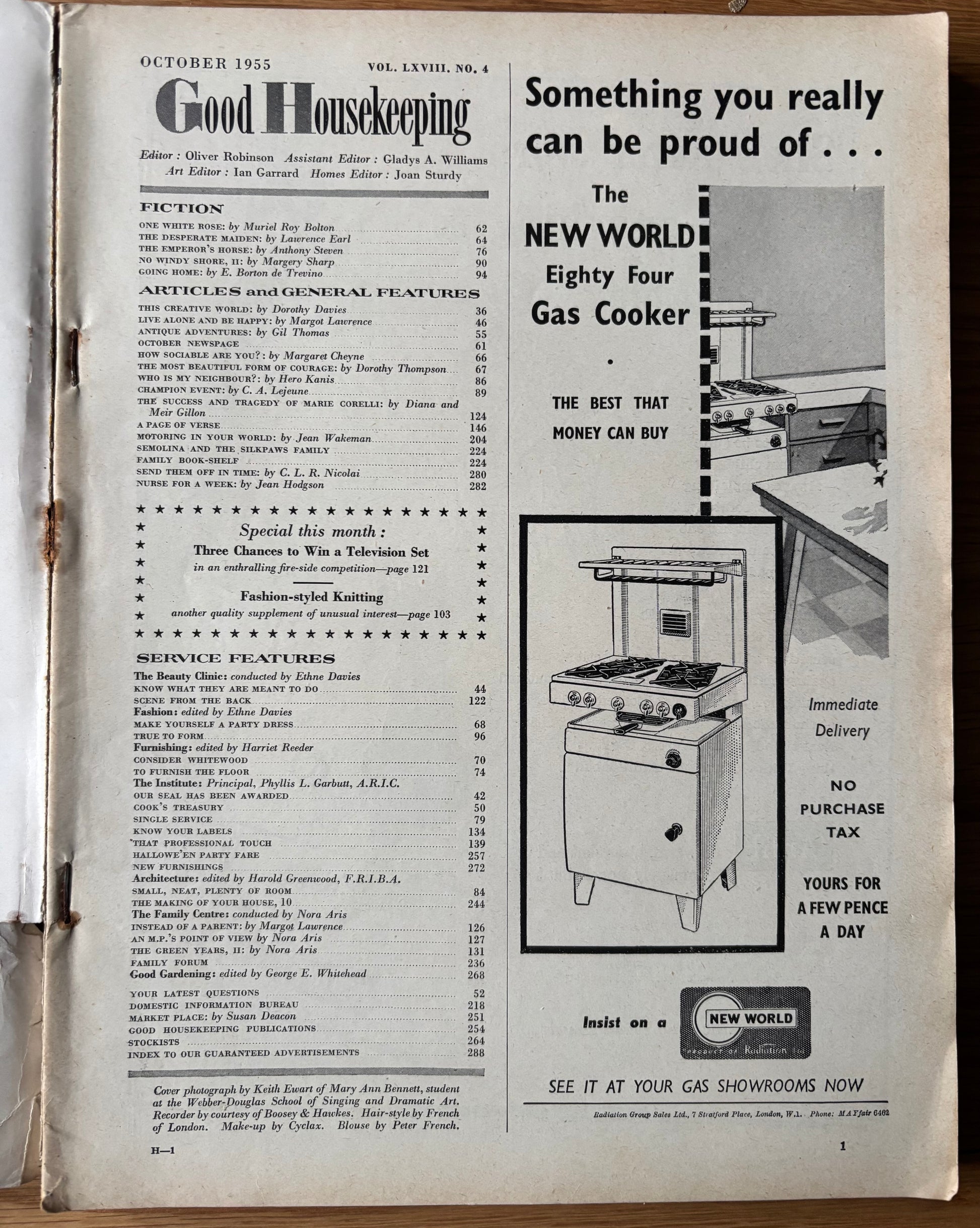 GOOD HOUSEKEEPING Magazine OCTOBER 1955 Illustrated KNITTING PATTERNS CLOTHES Recipes Ads