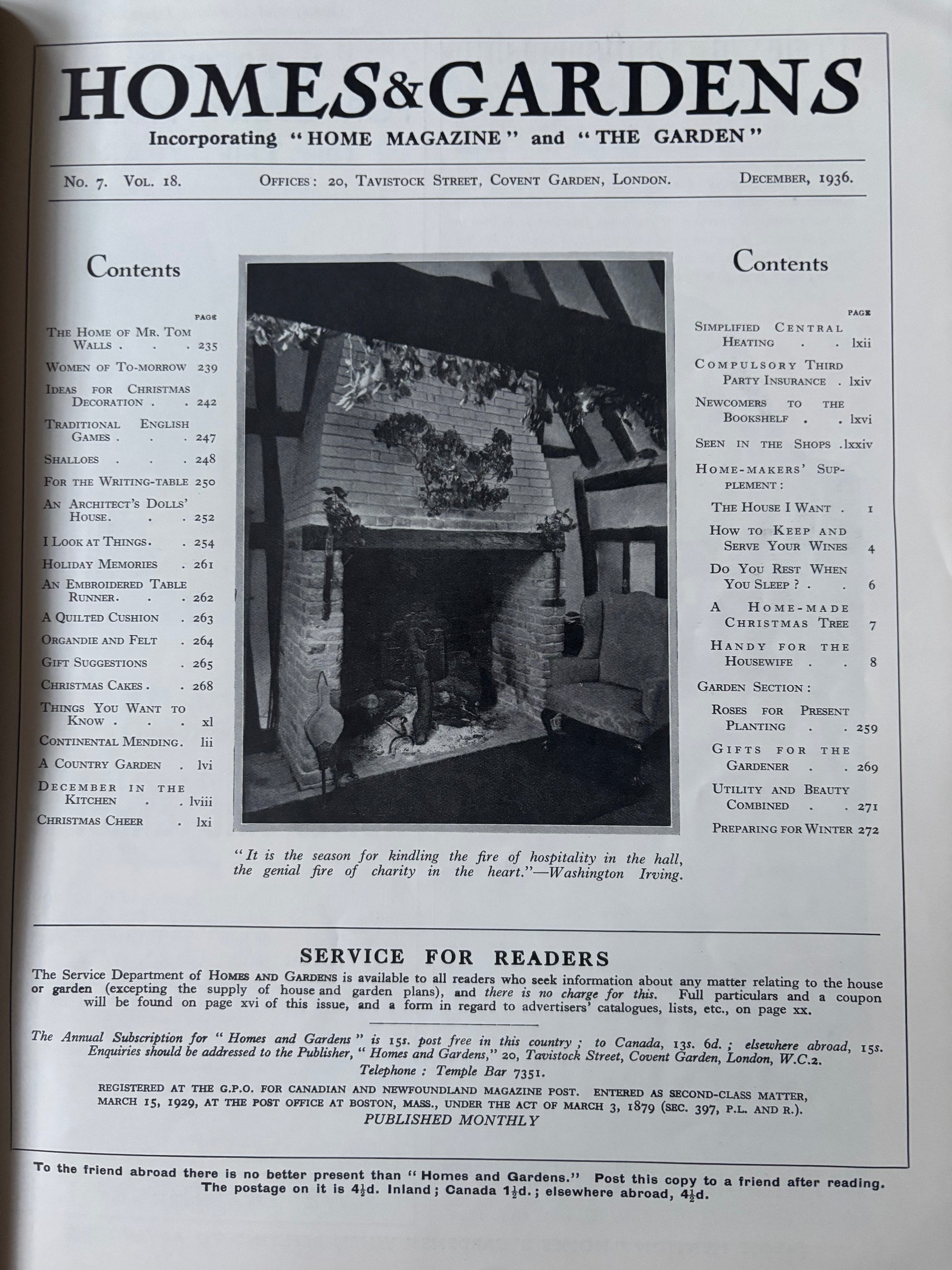 1930’s HOMES AND GARDENS Magazine December 1936 Illustrated ADVERTS