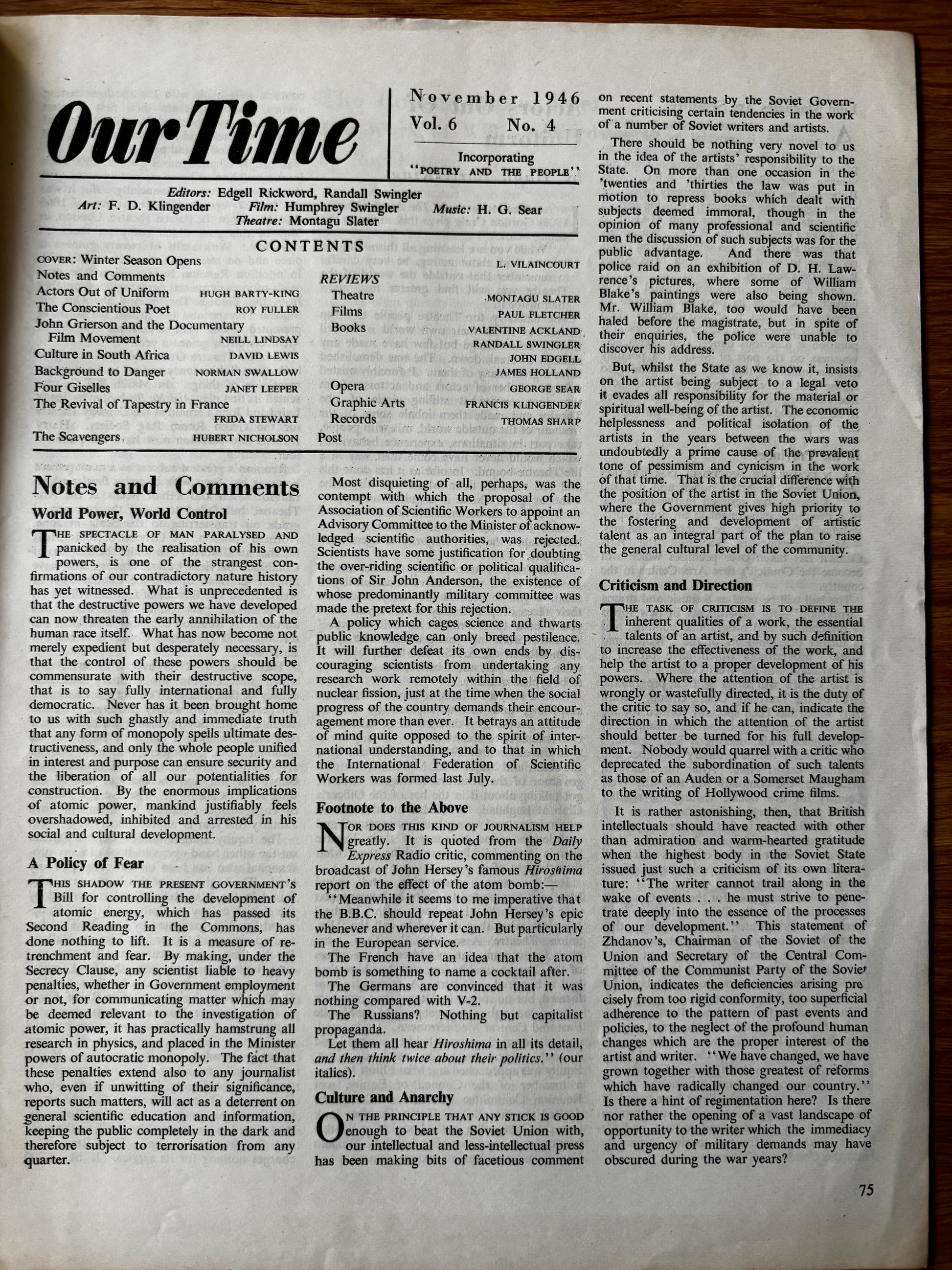 Vilaincourt OUR TIME Magazine November 1946 ERIC AMBLER Revival Of Tapestry France